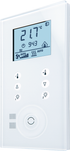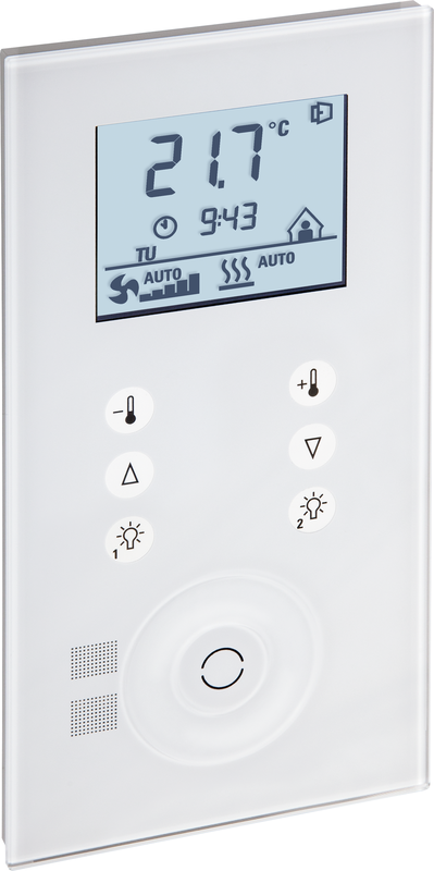 Il display multifunzionale, appositamente progettato per il funzionamento in ambiente, è dimmerabile e offre una chiara visualizzazione di tutti i dati disponibili in ambiente mediante simboli intuitivi. Oltre all'ora, al giorno della settimana e ai parametri climatici (temperatura, umidità, punto di rugiada, contenuto di CO2), è possibile visualizzare anche altre funzioni, come il funzionamento del riscaldamento/raffreddamento e del ventilatore, l'apertura delle finestre, l'illuminazione, l'allarme, il blocco delle chiavi o l'occupazione della stanza.