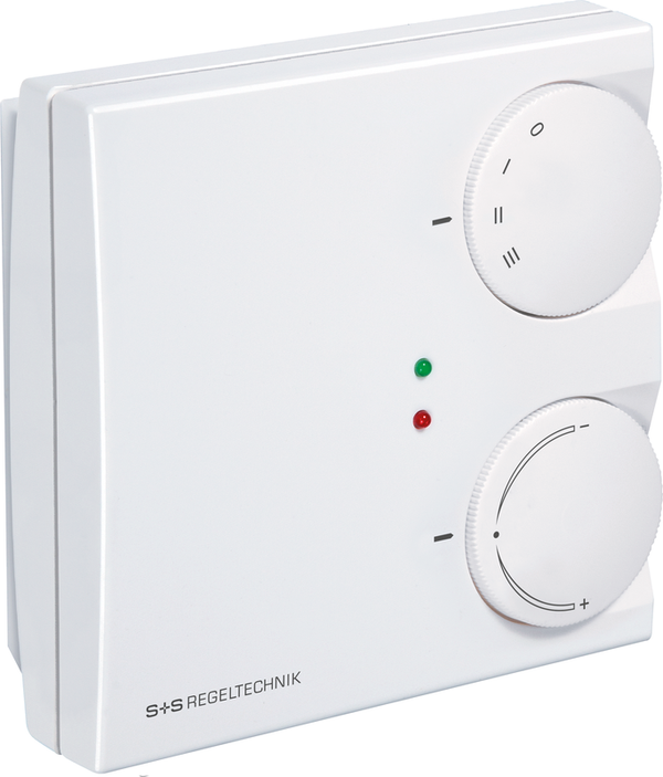 Termostato ambiente elettronico/regolatore di aria condizionata TERMICOASREG® RTR - S per il controllo o il monitoraggio della temperatura, con uscita 0-10 V per il riscaldamento e il raffreddamento, in opzione come regolatore climatico continuo con controllo manuale della velocità del ventilatore, regolazione del setpoint e display di funzionamento a LED.