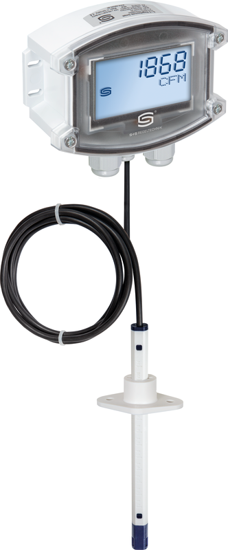 Sensore di portata d'aria a pendolo calibrabile RHEASGARD® PLGFV - Modbus con connessione Modbus, custodia in plastica resistente agli urti con viti a bloccaggio rapido, con pressacavo (connettore a spina M12 opzionale secondo DIN EN 61076-2-101), a scelta con/senza display, con sonda esterna per condotti incl. flangia di montaggio, per la registrazione della velocità di flusso (0,1...20 m/s). I seguenti parametri possono essere interrogati via Modbus: Velocità di flusso e portata volumetrica (calcolata).