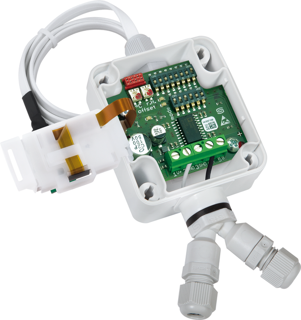 Il sensore universale a contatto viene utilizzato per determinare diversi parametri della tecnologia di misurazione dell'umidità. Vengono misurate l'umidità relativa e la temperatura dell'aria ambiente. Da queste variabili misurate vengono calcolati internamente diversi parametri. I seguenti parametri possono essere interrogati via Modbus: umidità relativa [% r. H.], umidità assoluta [g/m³], rapporto di miscelazione [g/kg], temperatura del punto di rugiada [°C], entalpia [kJ/kg] (senza tenere conto della pressione atmosferica) e temperatura ambiente [°C].