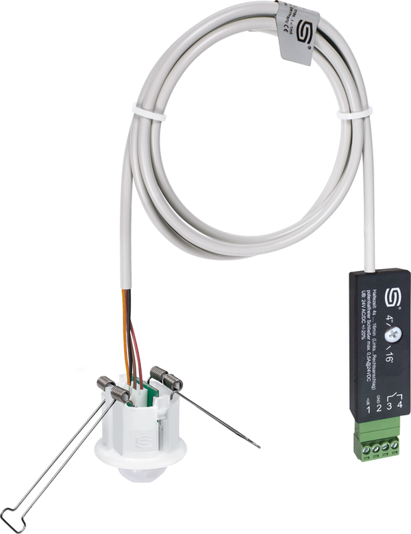 Il sensore di movimento a soffitto KINASGARD DBWF-C rileva la presenza di persone e il movimento e dispone di un contatto di commutazione (contatto NA) come uscita. Il rilevatore di movimento viene utilizzato per il monitoraggio, il rilevamento degli stati e il controllo delle funzioni del locale in funzione del movimento, ad esempio per abbassare la temperatura nei locali non utilizzati.