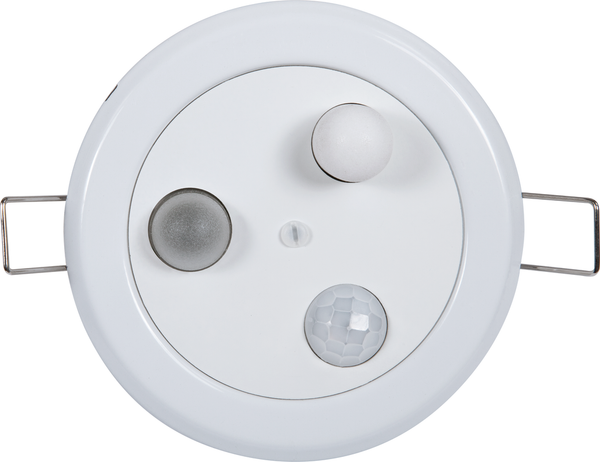 Il sensore rileva i movimenti con un angolo di apertura di 110° e una circonferenza di 360°. Il sistema di lenti brevettato con 20 lenti singole crea aree scure molto piccole, larghe solo pochi centimetri anche a 10 m di distanza, e rileva in modo affidabile i piccoli movimenti. Se viene rilevato un movimento, l'uscita a relè a potenziale zero viene commutata. Il tempo di mantenimento dell'uscita, misurato dal momento dell'ultimo movimento rilevato, può essere impostato internamente tramite un potenziometro da 4 secondi a circa 17 minuti.