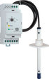 Misuratore elettronico di portata RHEASREG® KHSSW con uscita di commutazione, alloggiamento per l'installazione in quadri di distribuzione o armadi di comando con guida di montaggio da 35 mm, sonda di flusso esterna con flangia di montaggio, per la determinazione della velocità del flusso (0,1...20 m/s). I sensori di flusso ⁄ monitor di flusso sono adatti per il monitoraggio o il controllo dei flussi d'aria nei condotti, sui ventilatori, sulle serrande di controllo, per il monitoraggio dipendente dal flusso degli umidificatori e dei registri di riscaldamento elettrico in conformità alla norma DIN 57100 parte 420 o per l'uso in combinazione con i sistemi DDC.