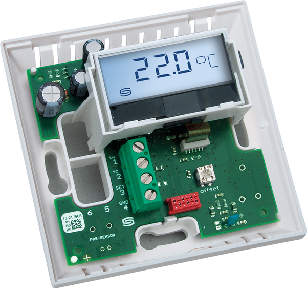 Trasmettitore di temperatura ambiente calibrabile TERMASGARD RTM 1 con uscita continua, a scelta con/senza display per visualizzare la temperatura effettiva, in un attraente alloggiamento in plastica,